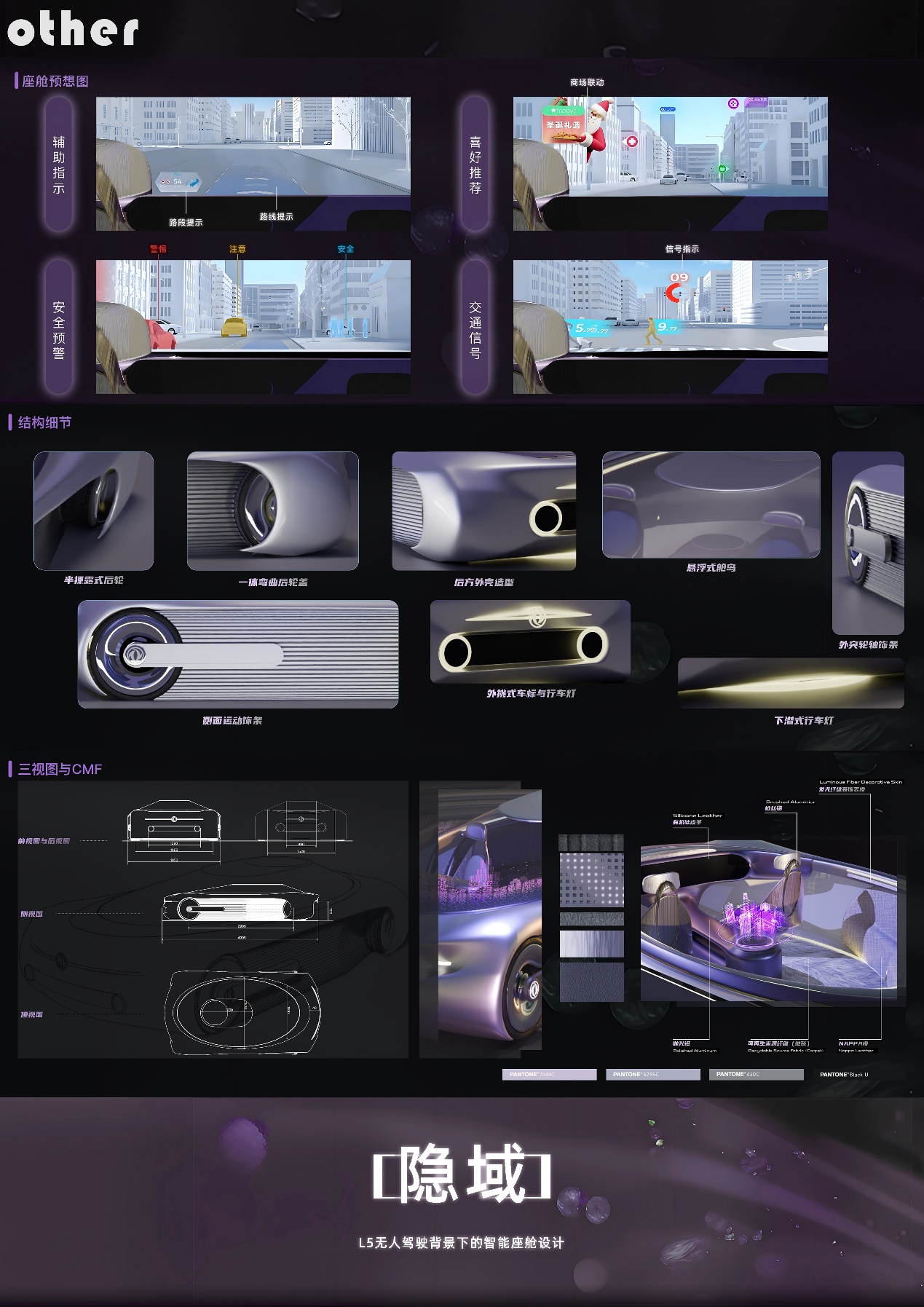 作品名称:隐域——L5无人驾驶背景下的智能座舱设计