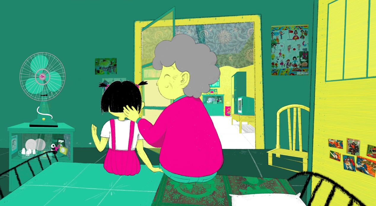 以老相簿为叙事线索,作品巧妙融入了躲猫猫、钓鱼游戏、放学路上、听故事、捉虫子等多个童年趣事场景。采用类似“画中画”的表现方式推进情节,将多种儿时老物件元素自然转化为画面的一部分,并承担起场景衔接与情绪串联的功能。