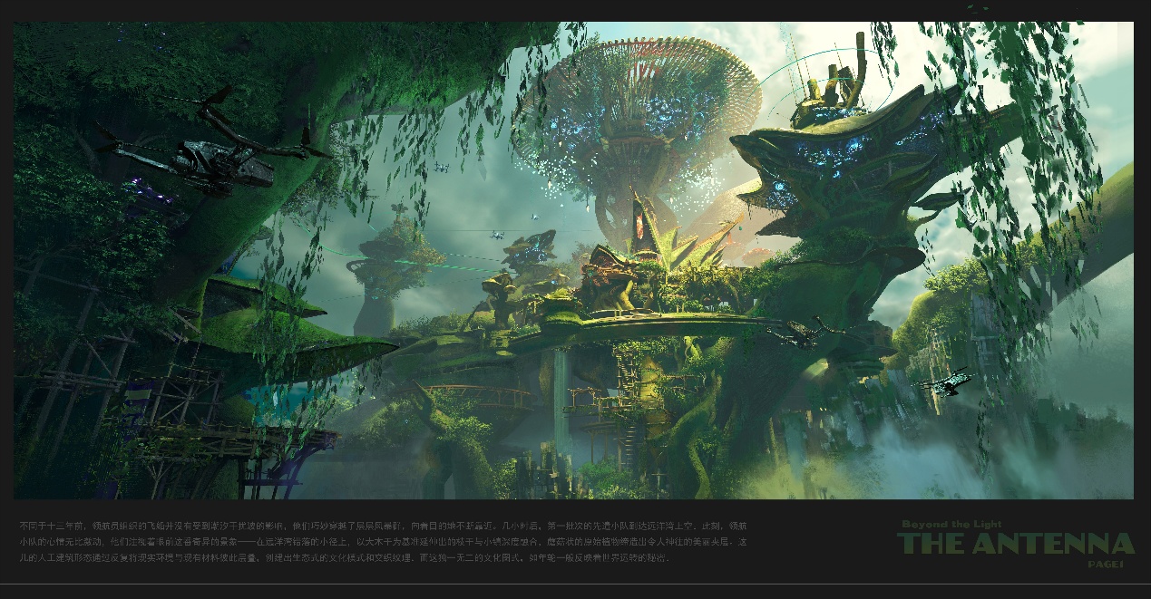 这是一组描绘生态朋克世界的游戏场景设计作品,它将呈现出极具幻想世界质感的视觉体验。破旧工业元素承载着往昔世界的厚重记忆,融合生态文明的理念,使丛林建筑与生态环境完美交融,展现了对未来生态以及人类文明的深邃思考。