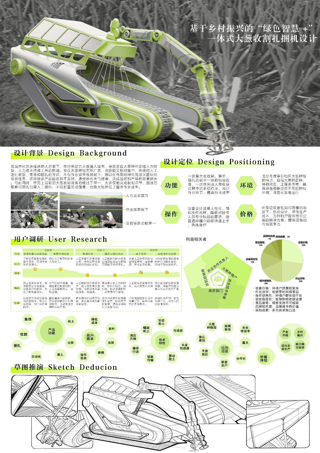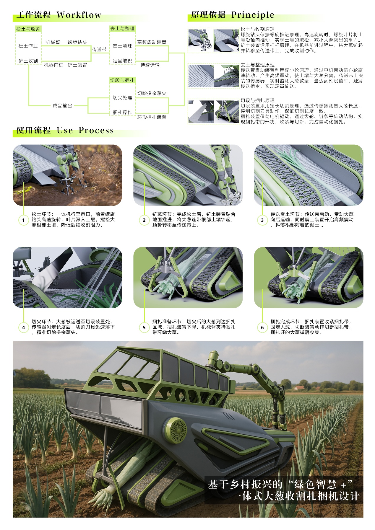 作品名称:基于乡村振兴的“绿色智慧+”一体式大葱收割扎捆机设计