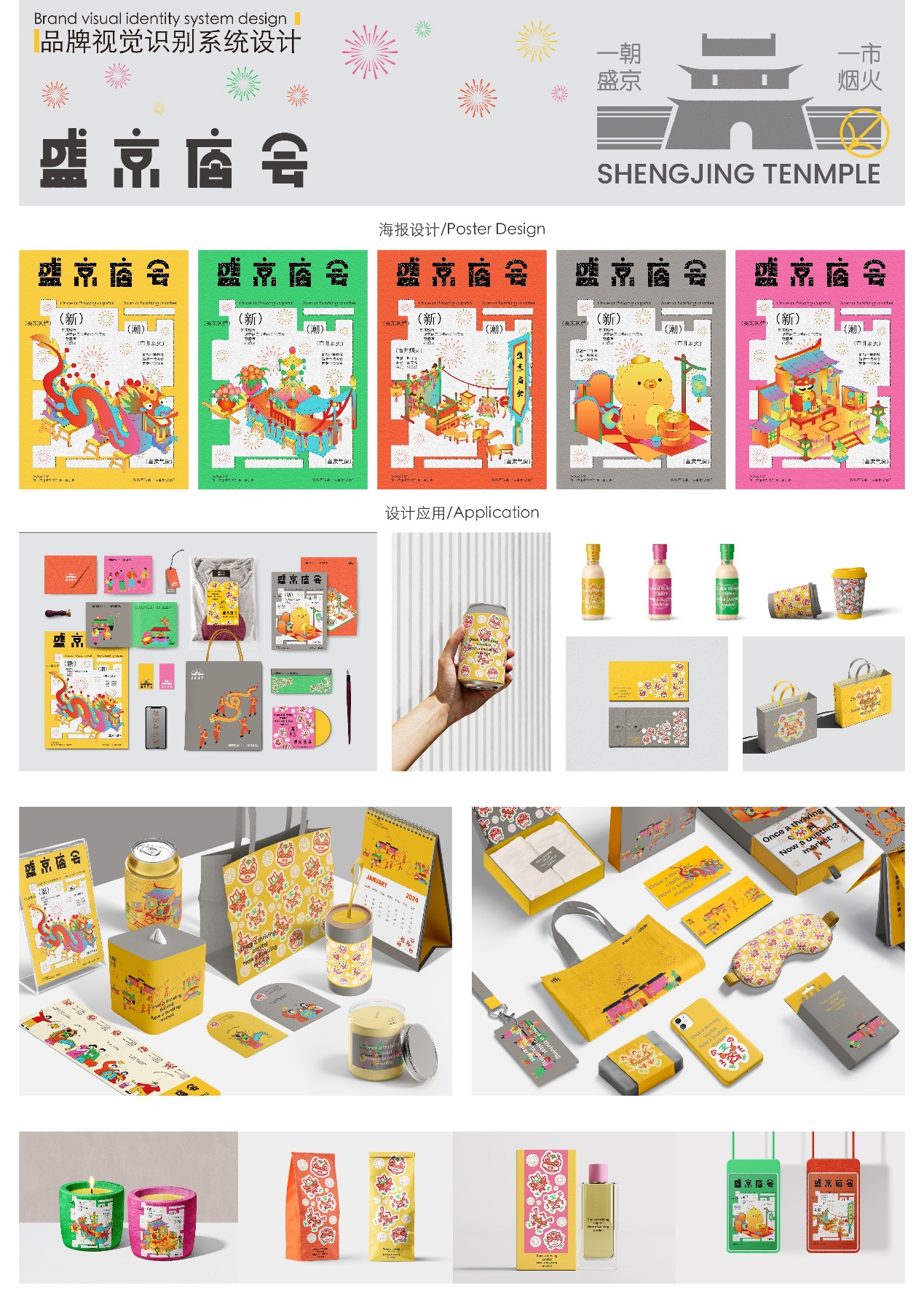 作品说明:品牌设计理念:该品牌设计以一朝感京·一市烟火”为核心主题旨在深度挖掘沈阳(盛京)作为历史文化名城的深厚底蕴,同时聚焦于庙会本身所蕴含的鲜活市井气息与人间温情。主题通过一既有历史的厚。朝”与“一市”的对比,构建起穿越时空的对话-重与恢弘,又有当下生活的热闹与烟火气,完美诠释了盛京庙会作为传统文化与现代生活交融的盛大舞台。