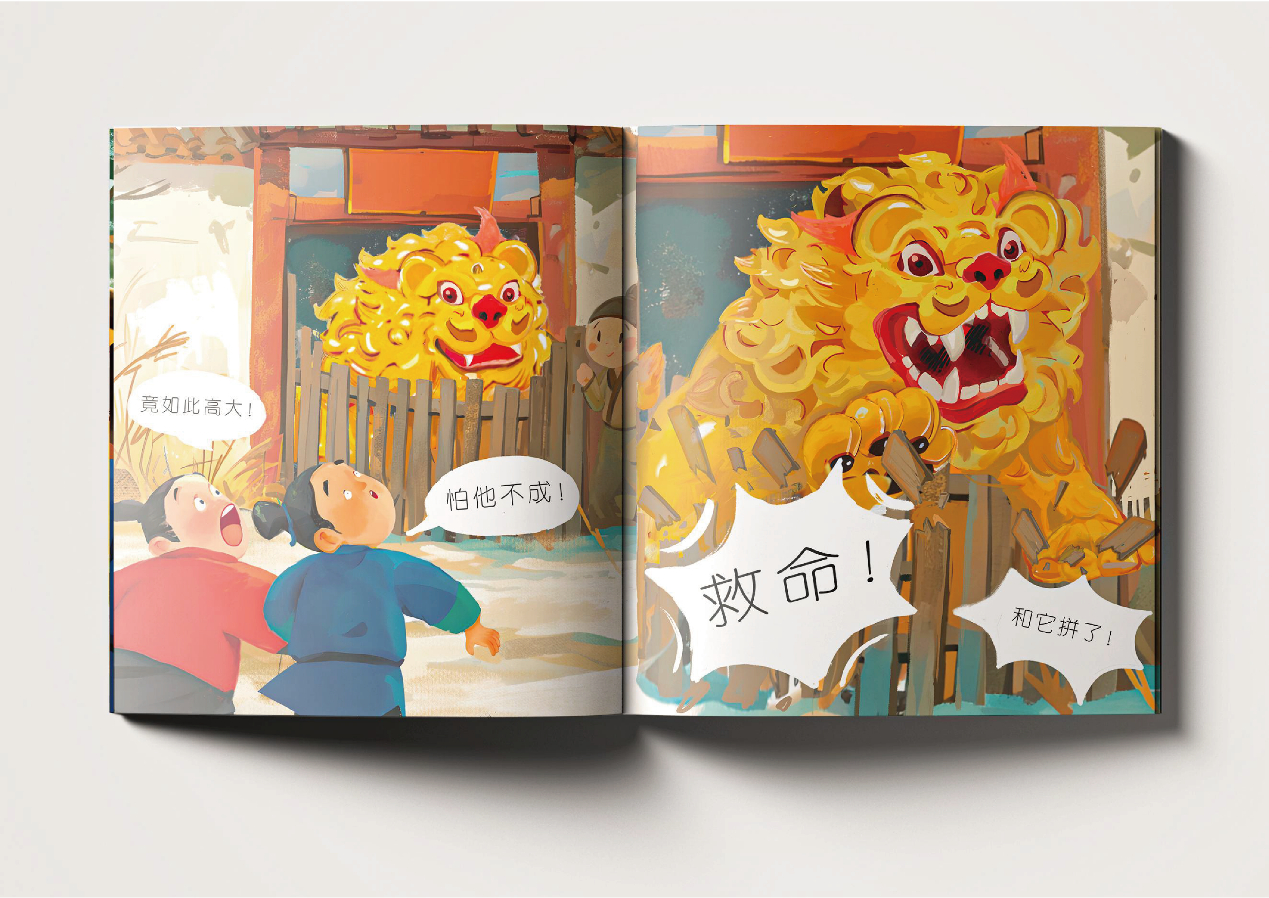 该绘本巧以舞狮诞生的民间传说为原型,致力于可视化讲述舞狮诞生,融合传统与创新,寓教于乐,不仅要展现舞狮的外形,更在挖掘其内在的民间故事和文化内涵,具有传说故事的严谨支撑和生动画面的可读性,让读者深入了解和感受到舞狮文化起源背后的故事和独特魅力。