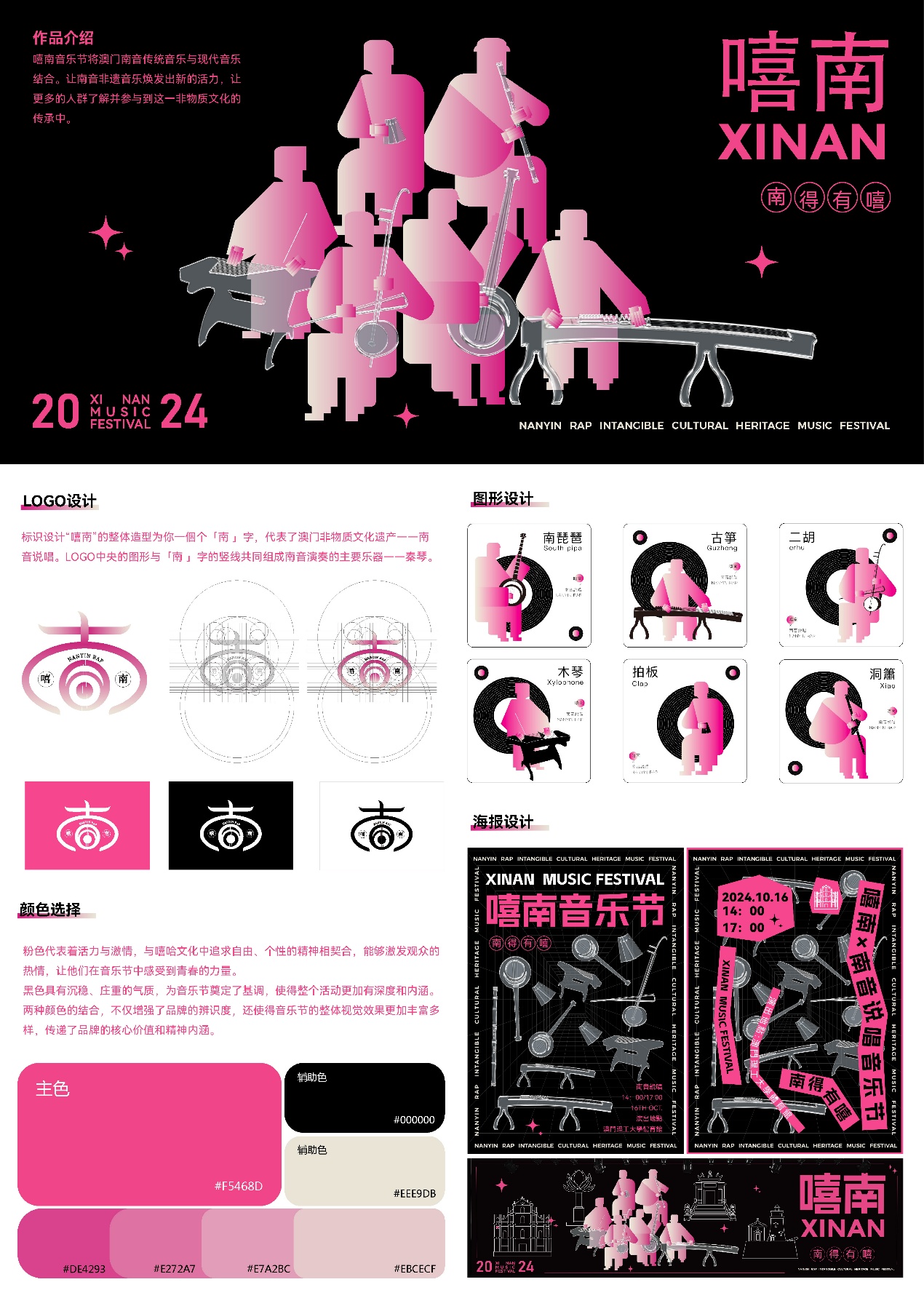 作品说明:通过”嘻南”音乐节设计作品,研究中国澳门非遗南音与现代说唱相结合的创新形式在年轻观众中的接受度,总结传统文化在现代社会下的创新传承模式。希望通过澳门南音说唱与现代科技结合的创新探索,找到赋予澳门南音说唱“二次生命”的方式,并让更多现代受众重新认识和喜爱这种传统音乐。